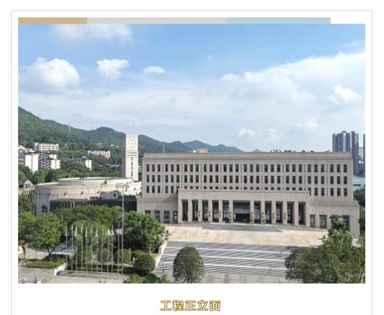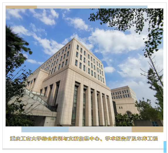 综合实训与文献信息中心.学术报告厅及车库工程总建筑面积64076㎡,建筑高度54米,由综合实训中心、文献信息中心、学术报告厅三大部分组成,并在东南侧连廊端头设置钟楼一座,是集图书馆藏借阅与服务管理、学术报告、数字校园、设备用房和地下停车为一体的校园建筑综合体。由重庆建工集团股份有限公司承建。