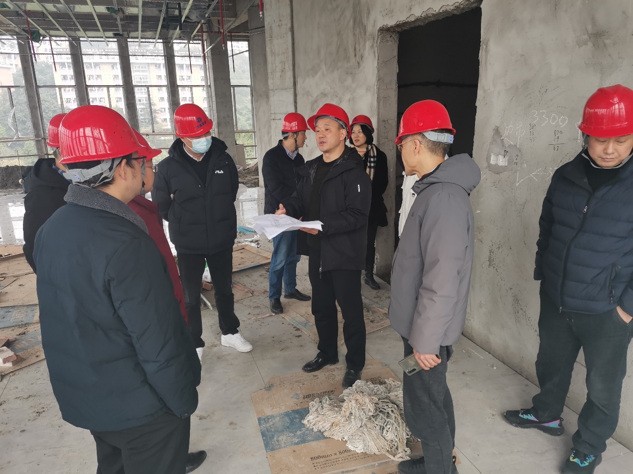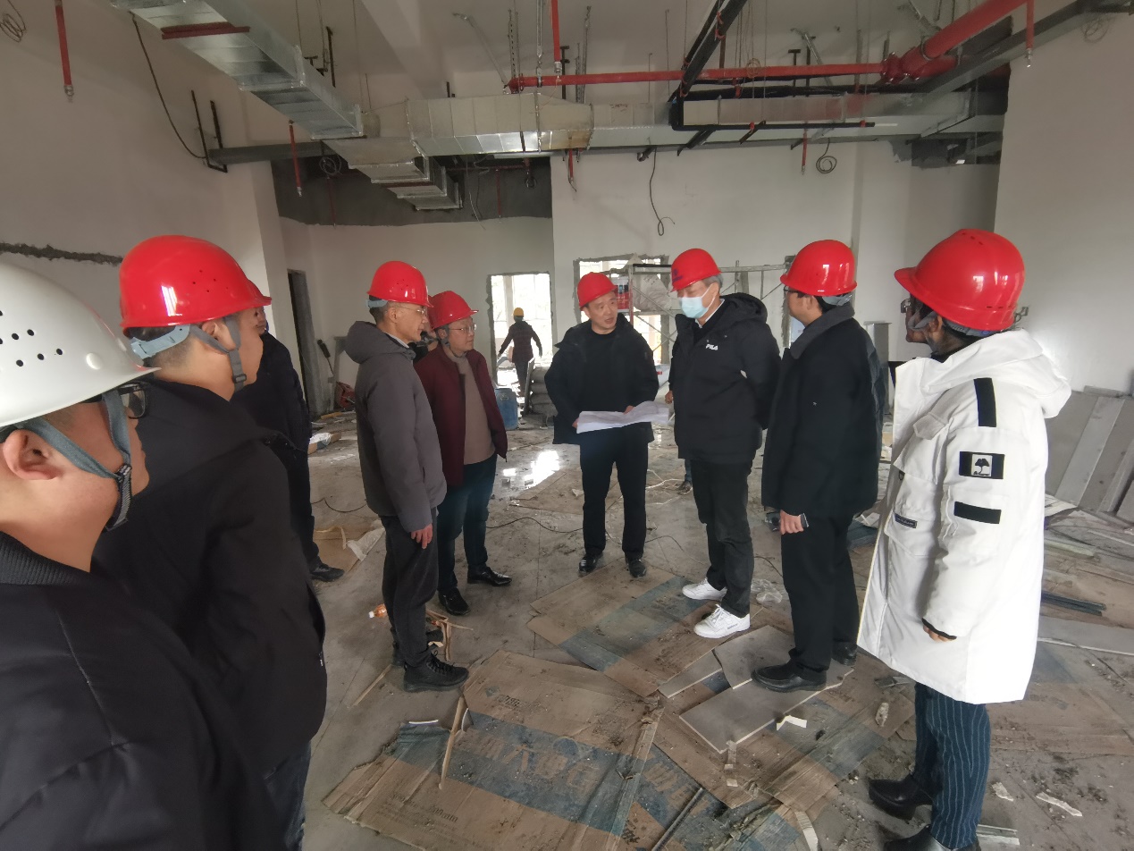 2022年元月5日下午,副校长陈运超、李国军带队考察学生活动中心工程,学校招生就业处、学生处、团委、基建处等职能部门人员随行考察。在施工现场两位校领导详细了解了工程施工进度、计划安排以及使用部门办公及会议场所布置等情况。