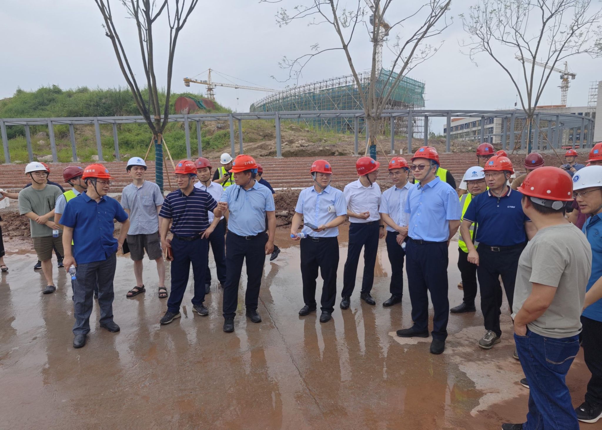 7月4日下午,校长温涛带队到茶园校区工地现场调研新校区建设推进情况。党委常委、副校长张波陪同调研。